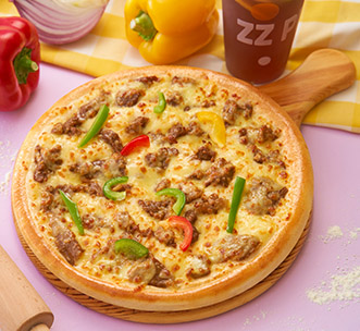 配料:鸡肉丁、青椒、玉米、火腿、芝士